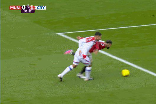 第4分钟,布伦南·约翰逊开出左侧角球,曼联中卫约罗看球不看人,被水晶宫中卫拉克鲁瓦一个急停摆脱。后者原地起跳将球顶入远角。0比1。